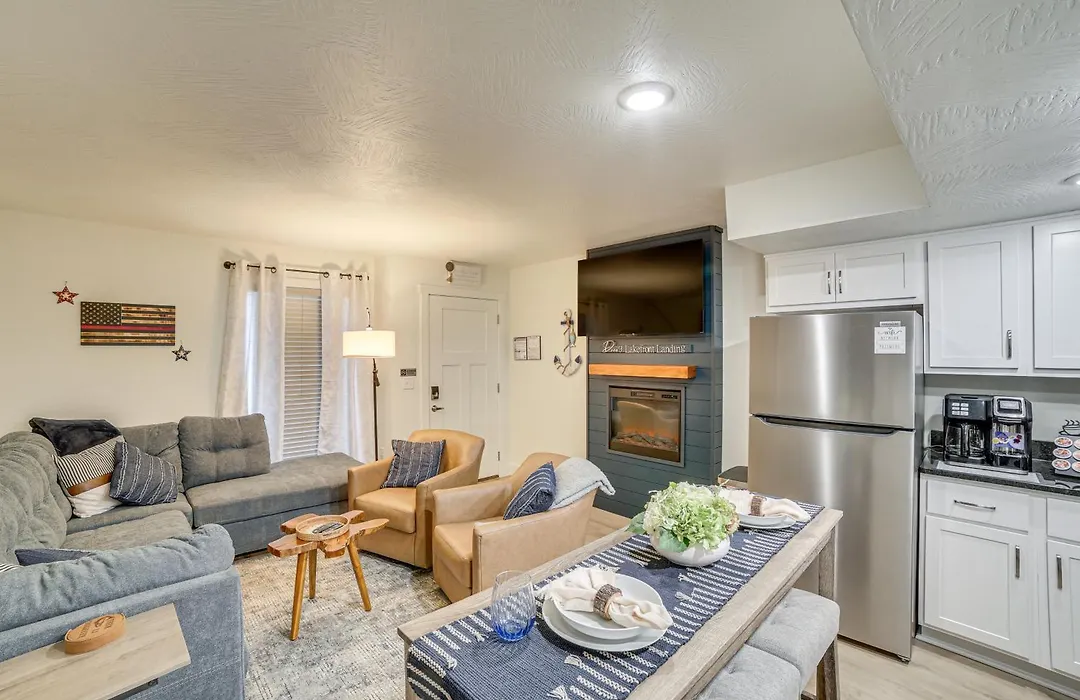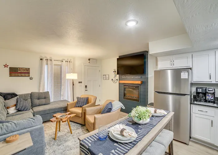 Walk To Branson Landing Condo With Resort Amenities offers a balcony and a well-equipped kitchen, as well as comforts like an air conditioner. The accommodation features a bathroom with a hair dryer and towels. Furthermore, a bathtub and a separate toilet is available.